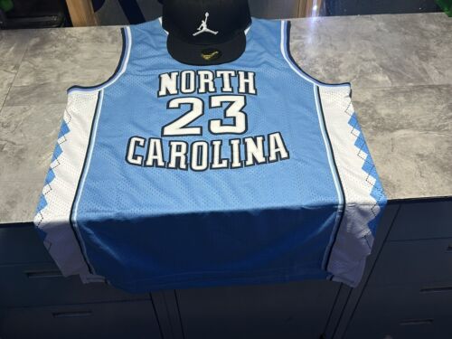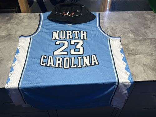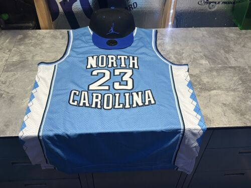 Show your support for the North Carolina Tar Heels and one of the greatest basketball players of all time, Michael Jordan, with this blue XL jersey. The jersey features Jordan's iconic #23 and the team logo, making it a must-have for any fan. Made from high-quality materials, this jersey is perfect for game day or displaying in your collection.