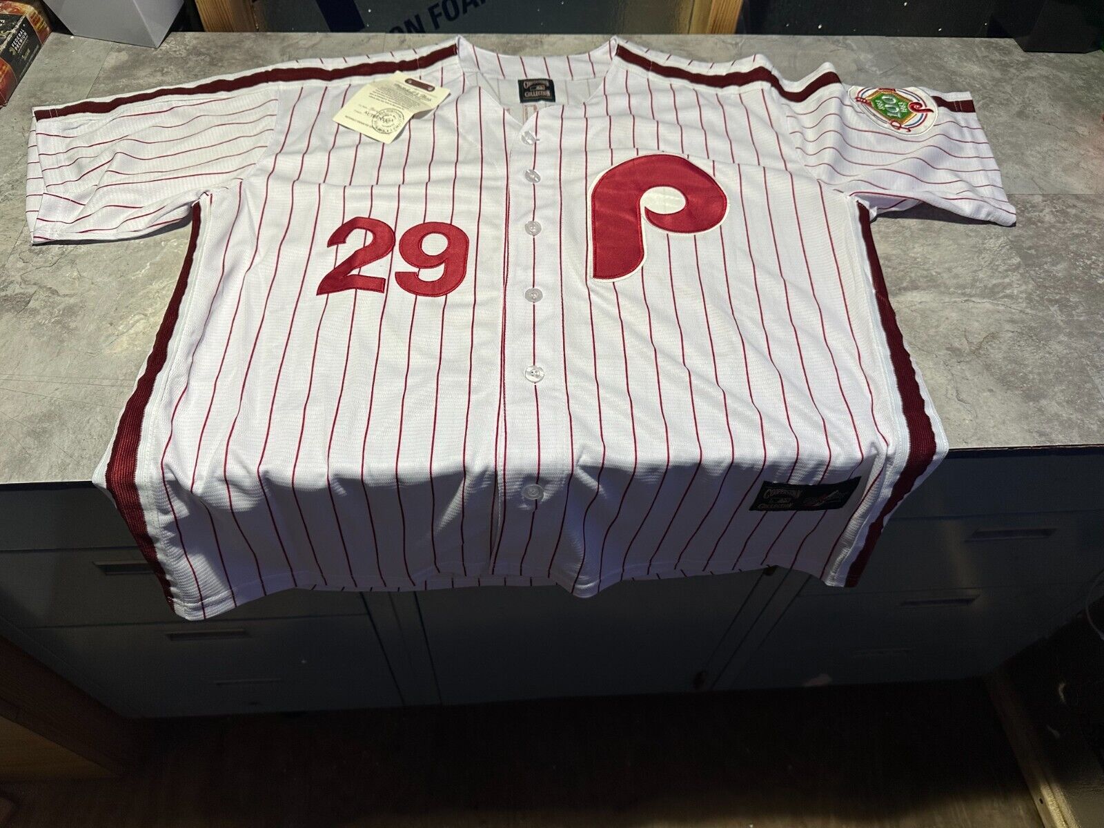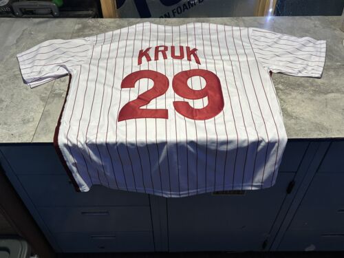 Show off your love for the Philadelphia Phillies with this John Kruk throwback jersey. Made by Mitchell & Ness, this XL jersey is perfect for any baseball fan. The white color and Phillies team logo make it a must-have for any fan of the Major League team.This jersey is perfect for regular season games and is a great addition to any sports memorabilia collection. It features the iconic number 29 and John Kruk's name on the back. Get yours today and show your support for the Phillies!