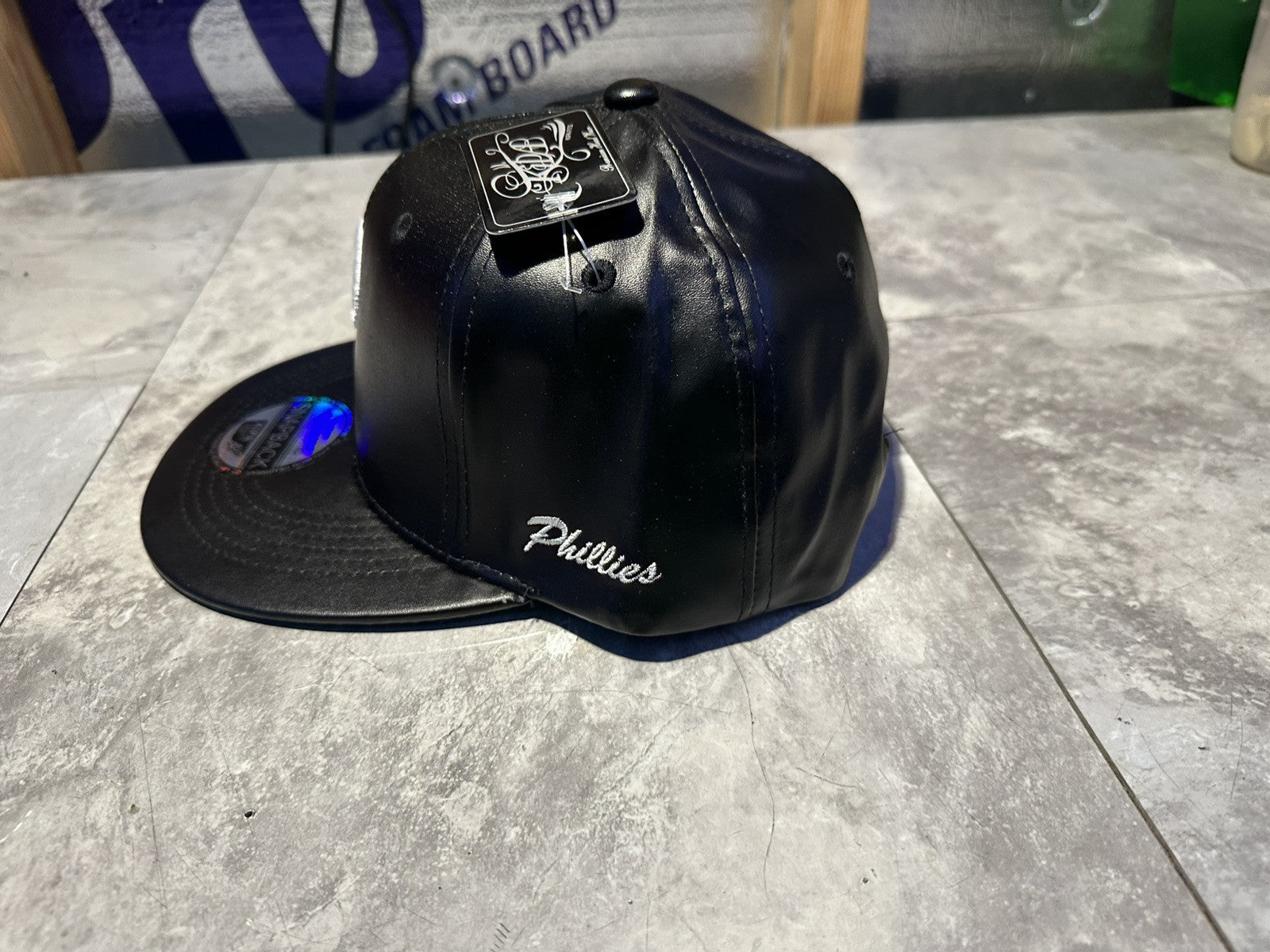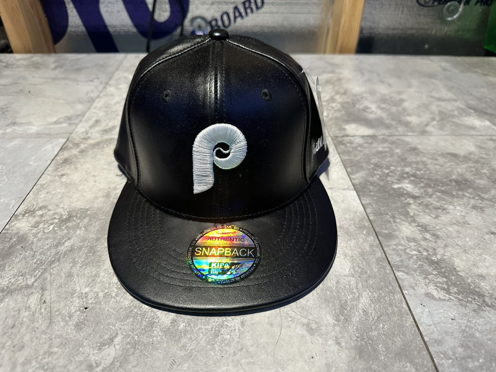 NWT Kipa Premium Philadelphia Phillies Throwback Leather Black Hat White P