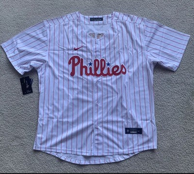 Elevate your game day ensemble with the Nike Bryce Harper Philadelphia Phillies Home Pinstripe Jersey. Designed for the ultimate fan, this men's 3XL jersey boasts a striking pinstripe design, paying homage to the timeless aesthetics of baseball. The high-quality fabric ensures comfort and durability, making it perfect for cheering from the stands or playing a friendly match.