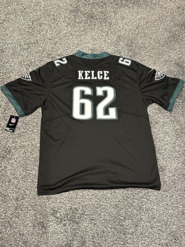 Show your support for the Philadelphia Eagles with this NWT Men's Nike Jason Kelce #62 Black Jersey. The jersey is perfect for any fan of the National Football League (NFL) and features the team's iconic logo on the front. Made with high-quality materials, this jersey is comfortable and durable, making it perfect for wearing to games or just out and about.