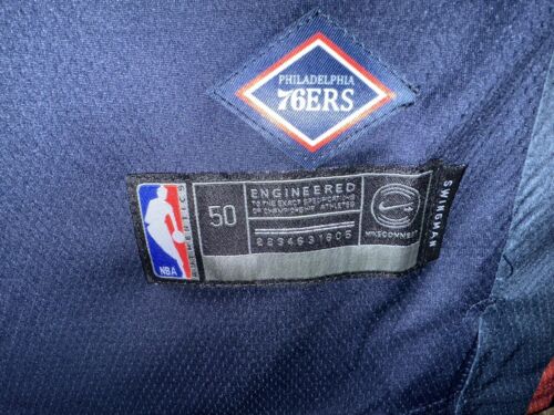 This is a Nike Philadelphia 76ers jersey featuring Tyrese Maxey's name and the words "City of Brotherly Love". It is a size large and is designed for men. The jersey is officially licensed by the National Basketball Association (NBA) and is perfect for basketball fans who want to show their support during the regular season.