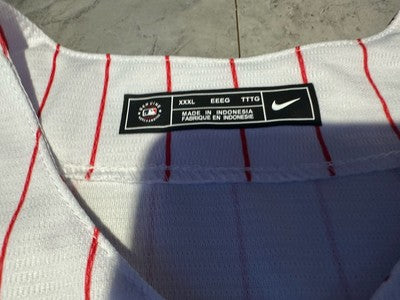 Show your love for the Philadelphia Phillies with this Nike officially licensed men's 3XL jersey. The white jersey features the old logo and is perfect for any fan of the Major League baseball team. Made for men, the jersey is a size 3XL and is great for any casual occasion. Represent your favorite team and show off your pride with this high-quality jersey.