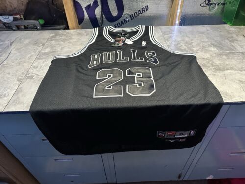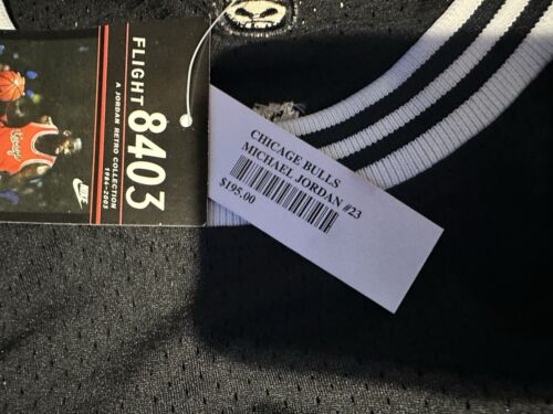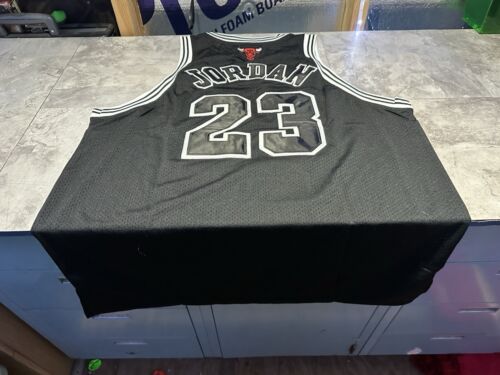 This Nike Michael Jordan Retro Flight 8403 jersey is a must-have for any Chicago Bulls fan. The black jersey features the iconic number 23 and is made for unisex adult wear. With its size XL fit, it's perfect for showing off your team spirit at the next basketball game or even just around town. The jersey is officially licensed by the National Basketball Association (NBA) and is a great addition to any sports memorabilia collection. Whether you're a seasoned basketball player or just a die-hard fan, this jersey is sure to make a statement.