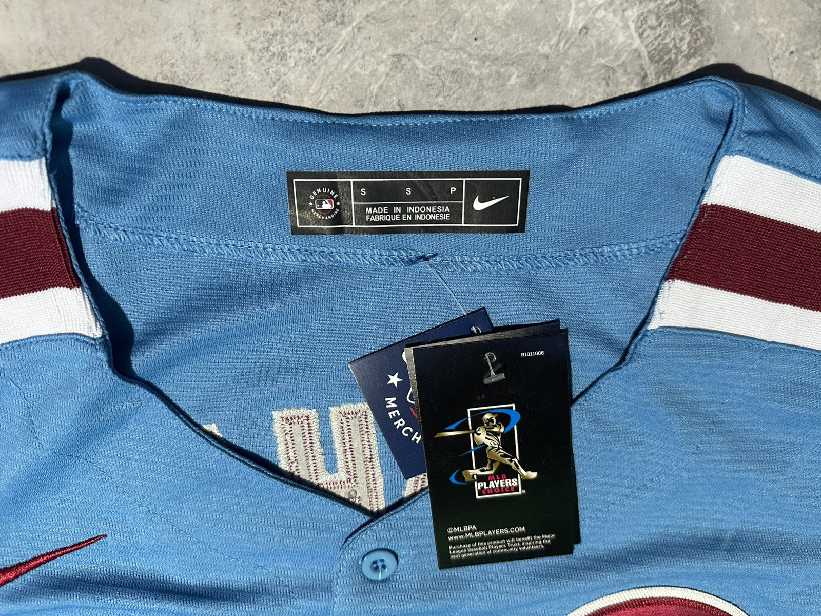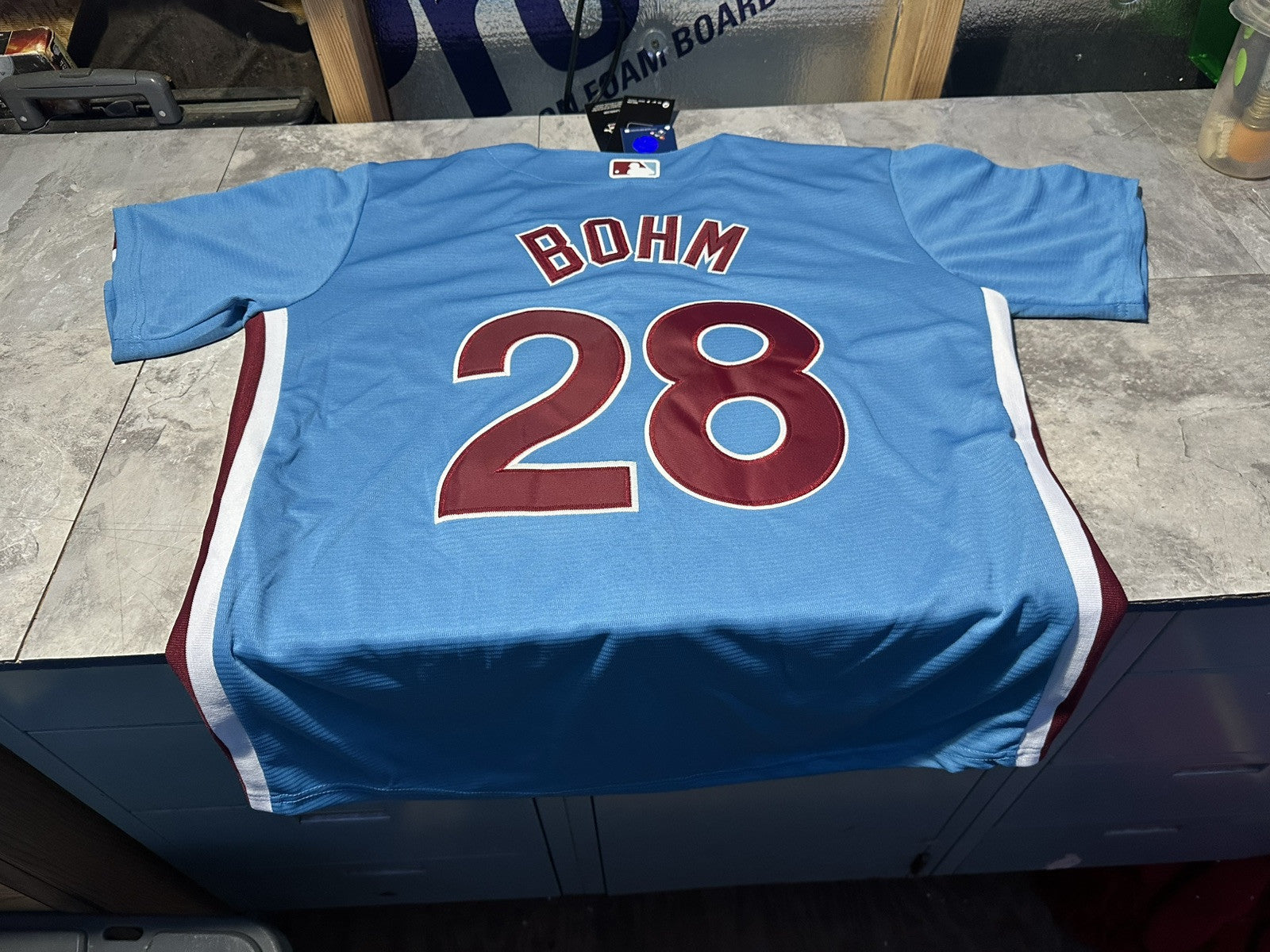 NWT Nike Philadelphia Phillies Powder Blue Alec Bohm Jersey Size Mediu