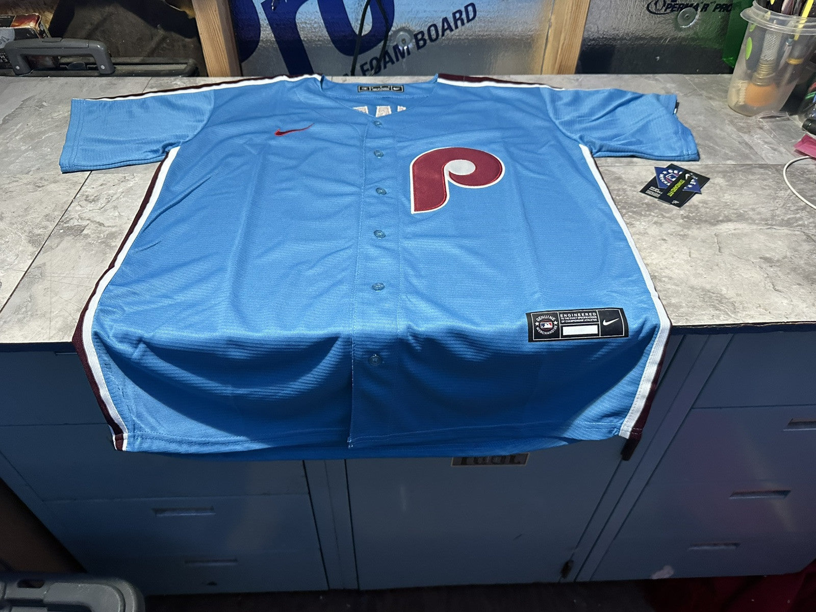 NWT Nike Philadelphia Phillies Powder Blue Kyle Schwarber Jersey Size Large