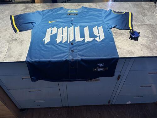 The XL jersey is perfect for anyone who wants to show their love for the Phillies, and the blue color is sure to catch the eye of any fan. This jersey is a great addition to any collection and is perfect for wearing to games or just around town. Get yours today and show your support for the Philadelphia Phillies!