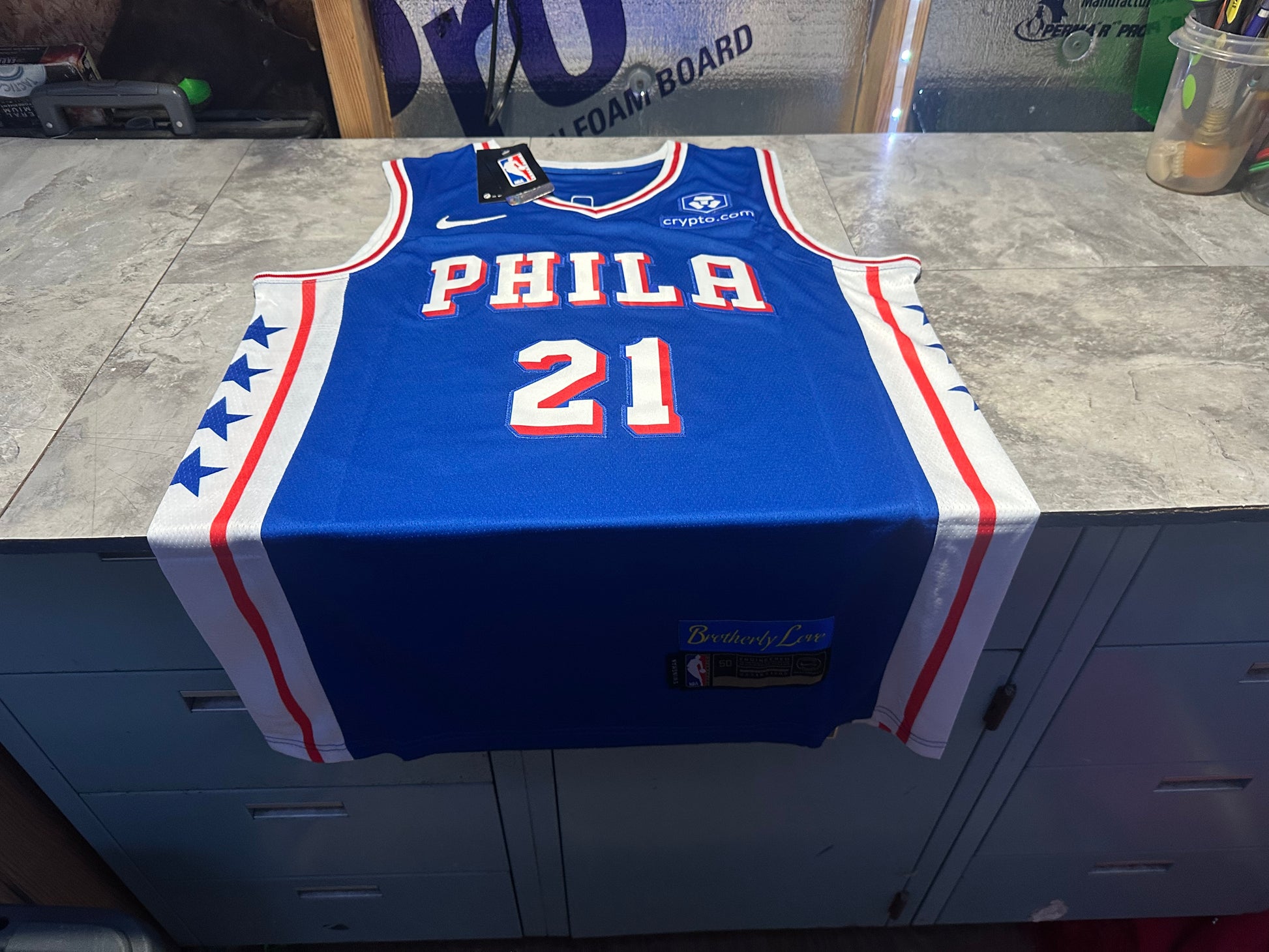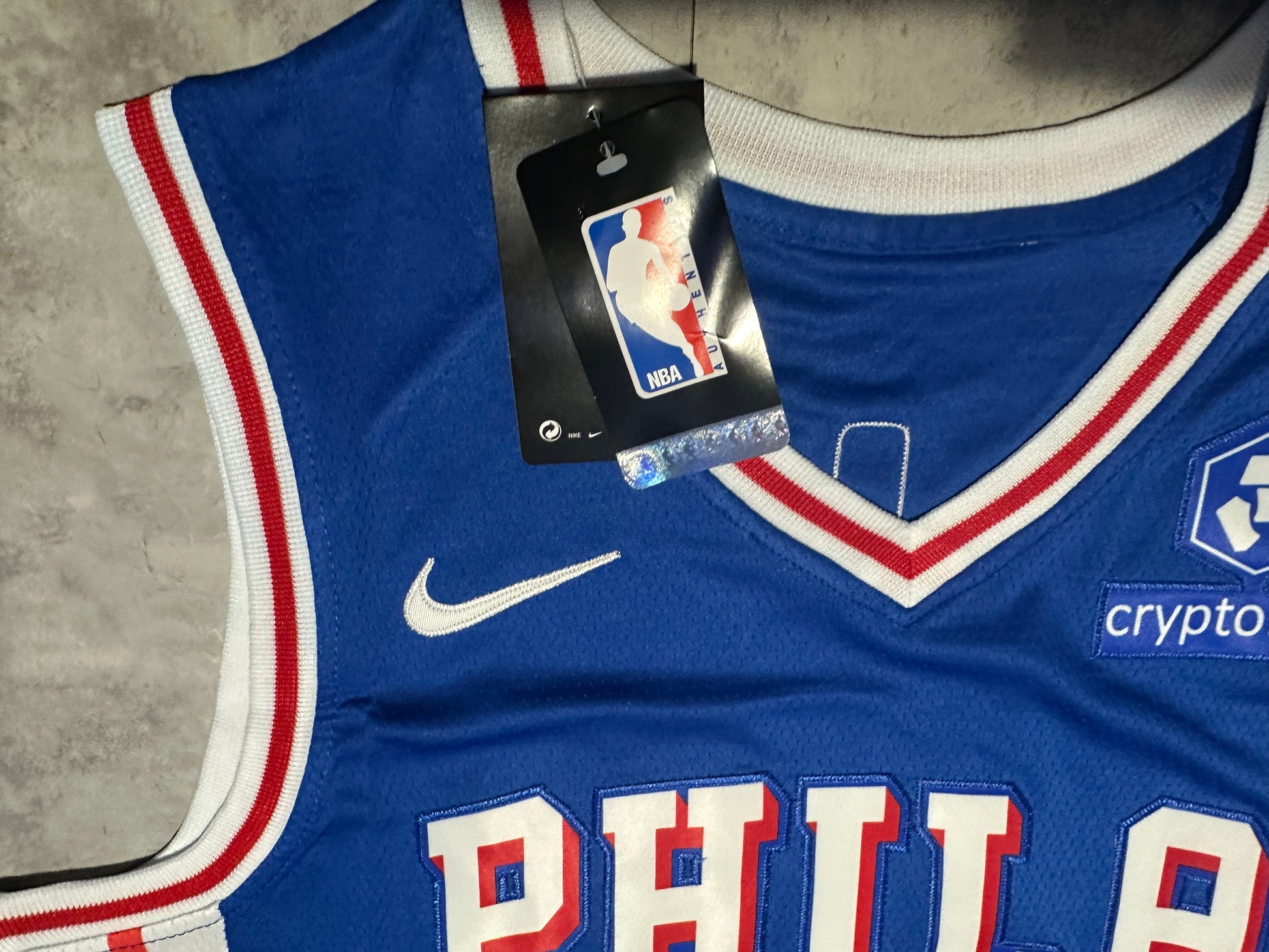 NWT Philadelphia 76ers Joel Embiid Swingman Jersey Statement Edition Blue Large