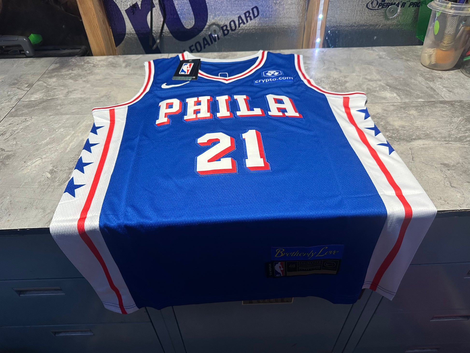 NWT Philadelphia 76ers Joel Embiid Swingman Jersey Statement Edition Blue Medium