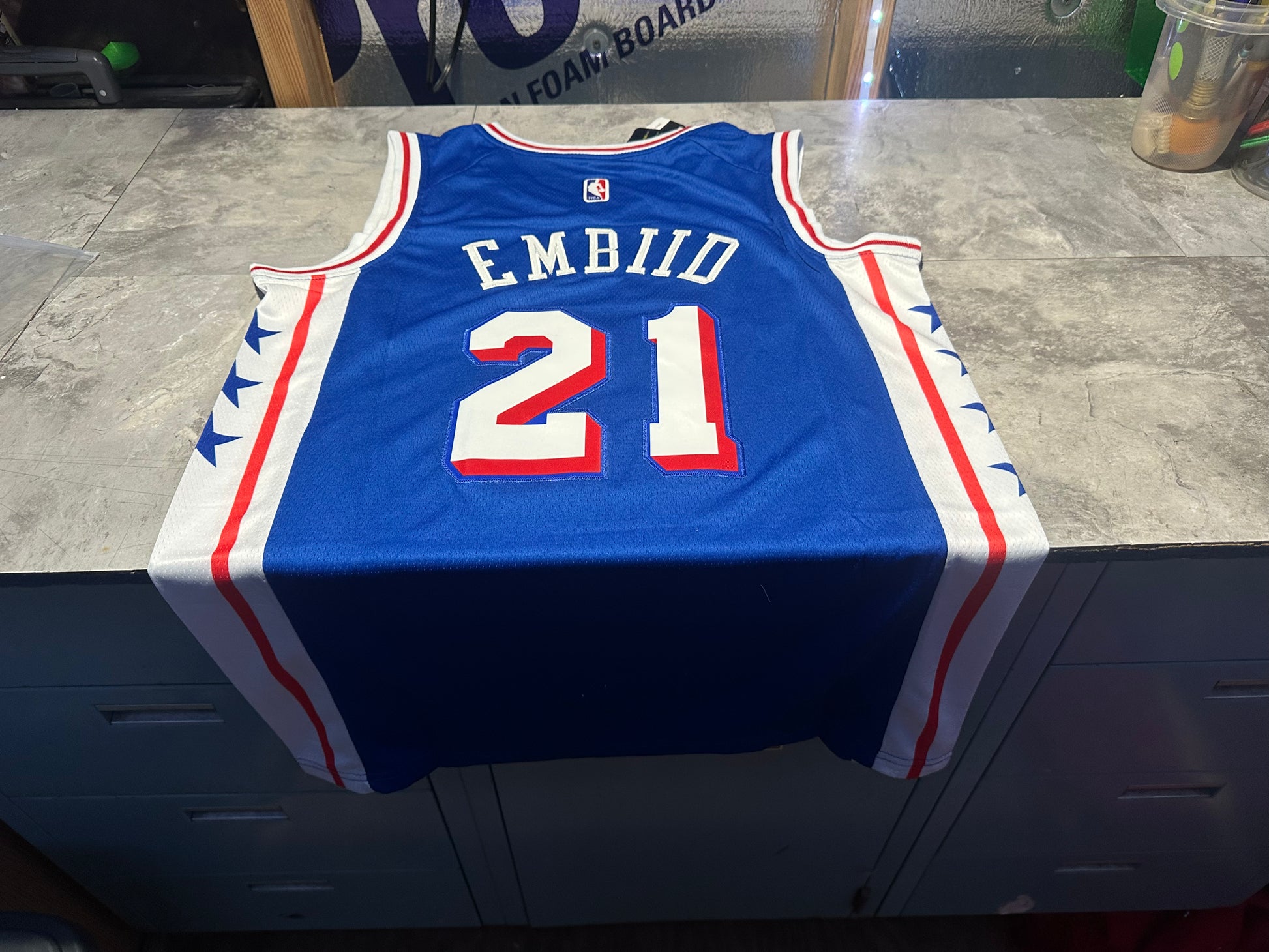 NWT Philadelphia 76ers Joel Embiid Swingman Jersey Statement Edition Blue Small