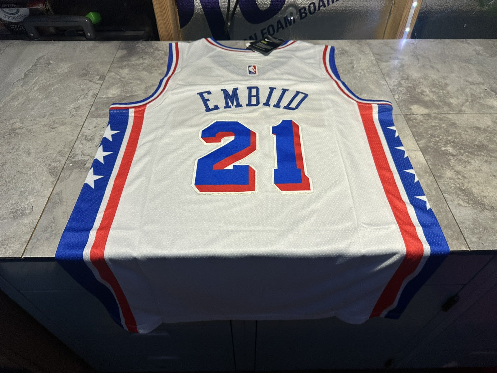 NWT Philadelphia 76ers Large White Joel Embiid Swingman Jersey Statement Edition