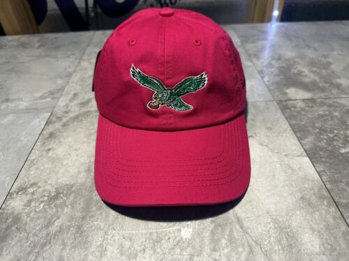 Show your love for the Philadelphia Eagles with this brand new, never-worn adjustable hat. The hat features the team's logo on a pink background, making it a perfect throwback item for fans of the Eagles' vintage look. The hat is one size fits all and is perfect for wearing during the regular season and beyond.